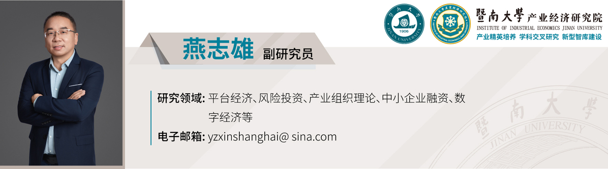 燕志雄,湖南省桃源县人,经济学博士,暨南大学产业经济研究院副研究员,博士生导师,数字经济硕士项目主任,广州风险投资促进会监事长。主持国家自然科学基金面上和青年项目各一项。主要研究方向为风险投资,平台经济和产业组织理论。在《经济研究》《经济学(季刊)》《统计研究》等多部知名期刊发表论文数篇,出版学术着作3部,曾获得过广东省哲学社会科学优秀成果奖二等奖。