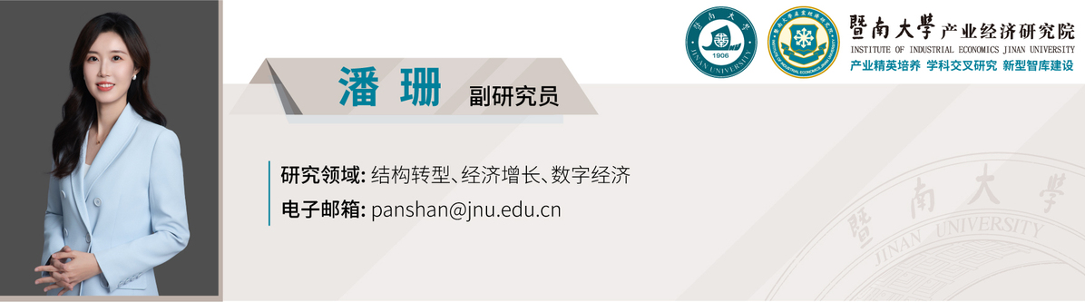 潘珊, 黑龙江省哈尔滨人, 暨南大学产业经济研究院副研究员, 博士生导师, 数字经济专硕教育中心学术主任, 主持国家社科后期资助项目、国家自科青年项目、广州社科智库课题等。在《经济研究》《管理世界》《经济学(季刊)》《中国工业经济》、Economic Modelling等国内外重要期刊发表论文十余篇。曾赴加拿大多伦多大学经济学系访问交流, 获得北京大学优秀博士学位论文、“产业转型与升级:国际经验与中国实践”国际研讨会论文二等奖、中国工业经济学会2023年会优秀论文奖等。主要研究方向为结构转型、经济增长、数字经济等。